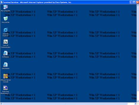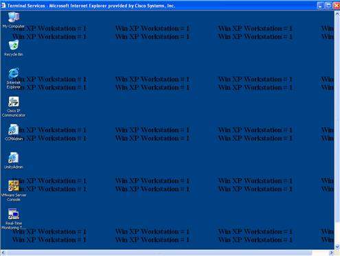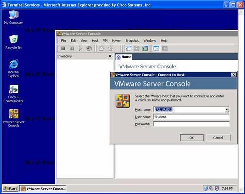 Step 5: Click on the Terminal Services bar to initiate a remote desktop session to the Windows XP Workstation 1. The screen below will appear.