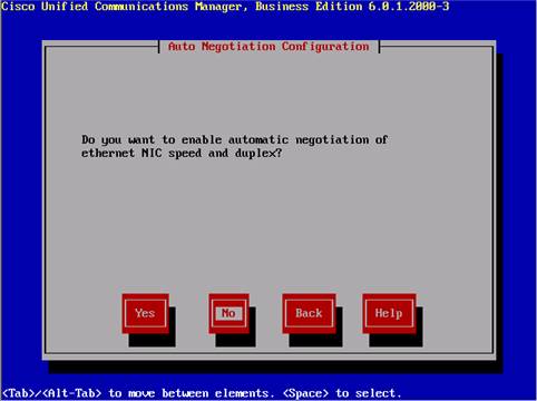 Step 9: The Cisco install documentation recommends that auto negotiation be disabled. Select No and press Enter.