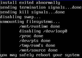 Step 1: Once all the text stops moving, the installation screen will appear. At this point the mouse is not supported so the navigation arrows of the laptop keyboard need to be used.