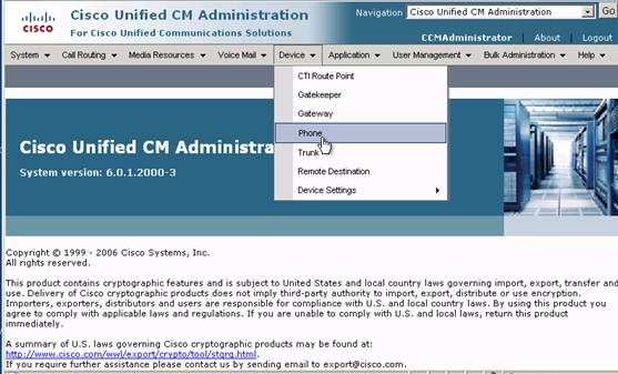 Task 4 - Viewing updated menus in Cisco Unified CM Administration 6.0
