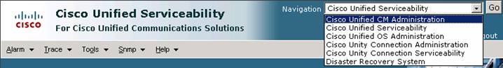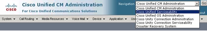 Step 11: In the upper right corner select Cisco Unified Serviceability and select Go.