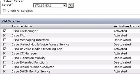Step 4: In the Select CCM Services/Applications tab, perform the following task: