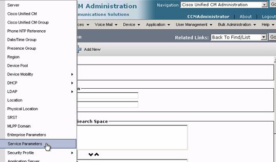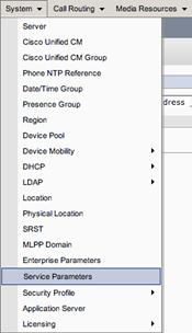 Step 1: Select System Service Parameters from the main menu. (On systems with multiple CUCM's this service can only be activated on the publisher node.)