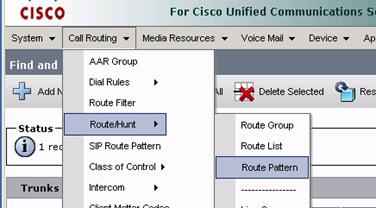 Step 1: Create a route pattern to route calls to the mobility gateway by going to Call Routing > Route/Hunt > Route Pattern