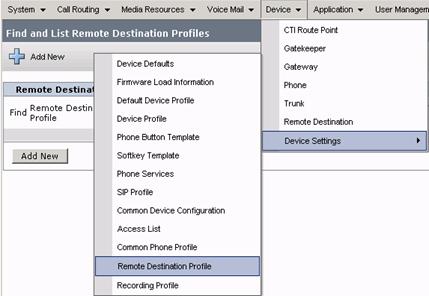 Step 7: Choose Device Device Settings Remote Destination Profile.