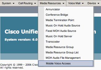 Step 17: Select Media Resources and Mobile Voice Access from the main menu.