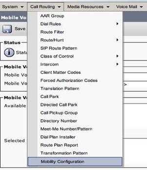 Step 21: Select Call Routing Mobility Configuration menu to setup a handoff (DID).