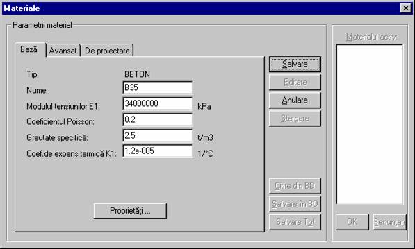 Gestionarul de materiale, care tocmai a fost lansat, va cere sa selectionati un tip de material pe care doriti sa-l folositi în proiect. Alegeti BETON pentru prima structura.