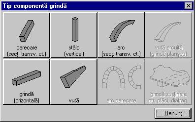 Ati definit materialul si sectiunea. Mai departe puteti sa introduceti primul element de tip grinda. FEAT'98 va da posibilitatea sa alegeti din mai multe tipuri.