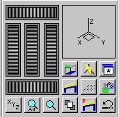Coltul din dreapta sus arata coordonatele globale si orientarea lor în vederea definita. Patrulaterul mic simbolizeaza planul de lucru.