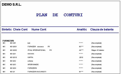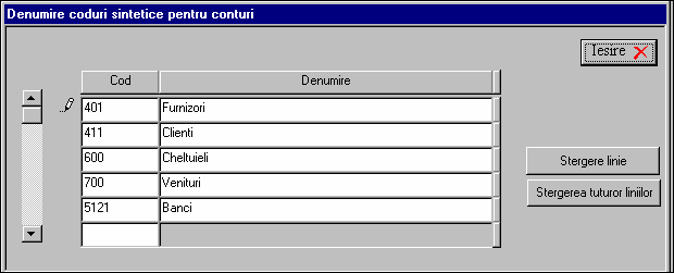 - coduri sintetice si coduri analitice pentru conturi si articole ;