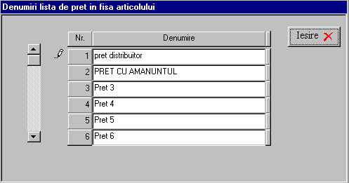 Exemplu de ecran pentru modificarea listelor de preturi de vanzare: