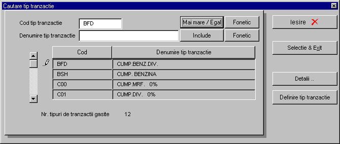 3.2.2.Alte optiuni existente in meniul Tipuri de Tranzactii