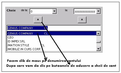 Daca dorim sa se afiseze toate codurile de produse se apasa pur si simplu butonul Mai Mare/ Egal fara a mai completa nimic la cheia de cont. In acel moment apare fereastra de rezultate. Se selecteaza articolul dorit prin apasarea butonului Selectie & Exit.