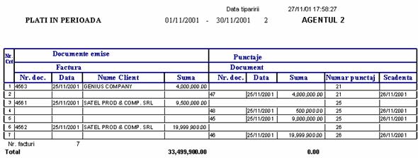 Raportul arata astfel si este emis pentru fiecare agent de vanzari in parte: