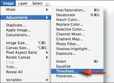 Choose Image > Adjustments > Threshold to apply a Threshold adjustment to