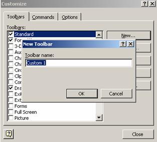 Deschide caseta de dialog Customize si executa click pe butonul New pentru a afisa caseta de dialog New Toolbar.