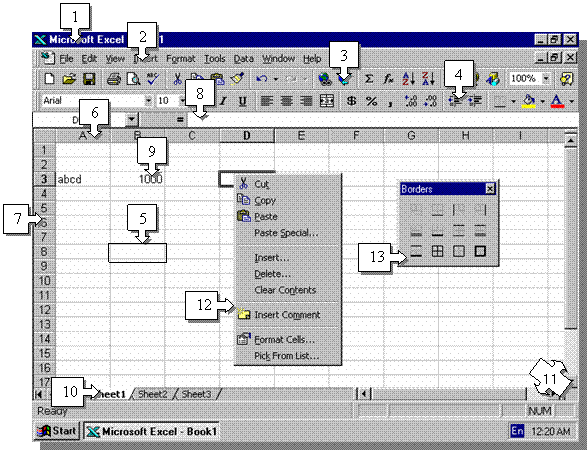 12 - Meniu de comenzi rapide (apare cu click dreapta pe foaia de calcul)
