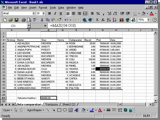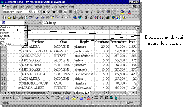 Când sunt introduse înregistrari care se repeta MS EXCEL va recunoaste primele litere si va completa restul înregistrarii.