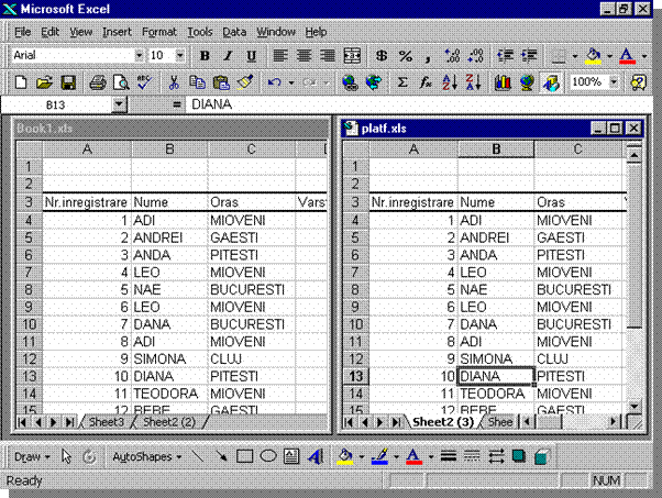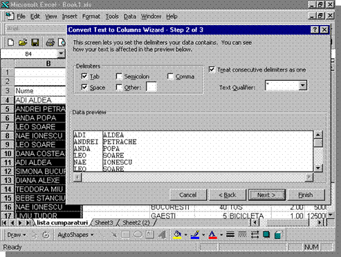 In practica s-ar putea sa avem nevoie sa preluam o lista de nume, spre exemplu, din Word si sa o completam în Excel. Pentru aceasta procedam astfel: