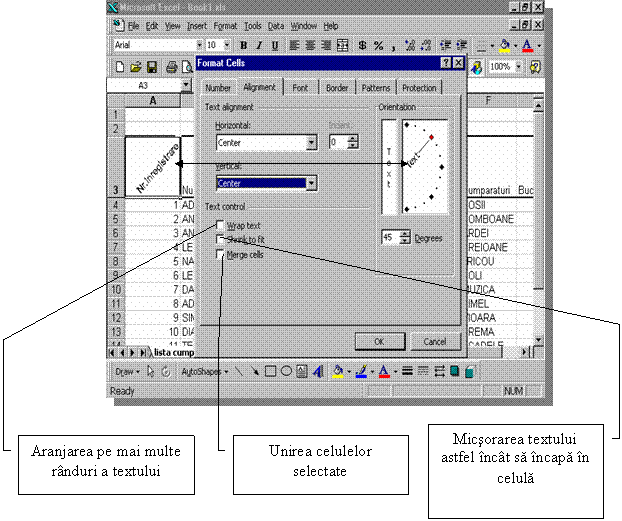 - Aliniaza la centru (centreaza) datele din celulele selectate