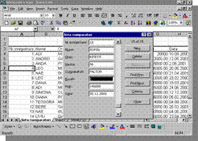b) Din meniul Data alegem Form. Va fi afisat un formular tip pentru introducerea datelor în tabel