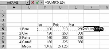 Formulele permit efectuarea calculelor, in cadrul foii de calcul. Cand folositi formule, Excel va recalcula automat rezultatul la orice modificare a valorilor numerice care participa la respectivul calcul. Formulele pot fi introduse direct in celula sau indicand celulele cu care opereaza formula.