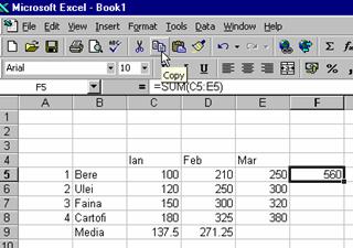 Copierea formulelor este aproape similara cu copierea datelor, cu diferenta ca referirile la coordonatele celulelor din foaia de calcul sunt modificate de noua locatie in care este copiata formula. Pentru a preveni modificarea coordonatelor unei celule, vor trebui folosite coordonatele absolute.