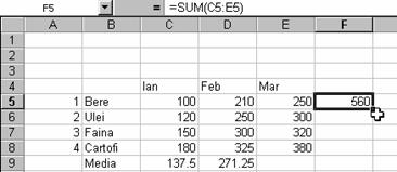 Pasul 1: Selectati o celula situata in jos sau la dreapta fata de sirul de celule a caror valori doriti sa le insumati;
