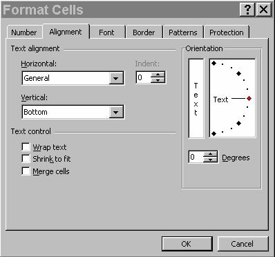 Top - pentru a alinia continutul celulei la marginea superioara a acesteia ;