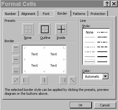 In caseta BORDER, se selecteaza partile din celule care vor avea margini: