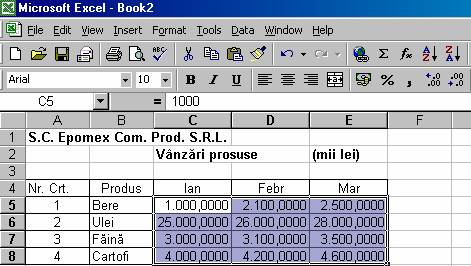 Nota În multe situatii un titlu este mai lung decât latimea celulei care contine datele respective, de aceea textul se "înfasoara" într-o singura celula.