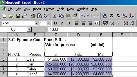 Efectuati clic pe butonul Currency Style (simbol valutar), din bara de instrumente Formatting