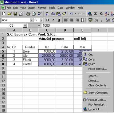 Efectuati clic pe butonul drept al mouse-ului în celulele selectate si alegeti comanda Format Cells din meniul scurtatura.