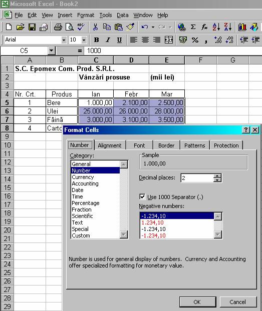Selectati modul de afisare a numerelor negative din lista Negative numbers.