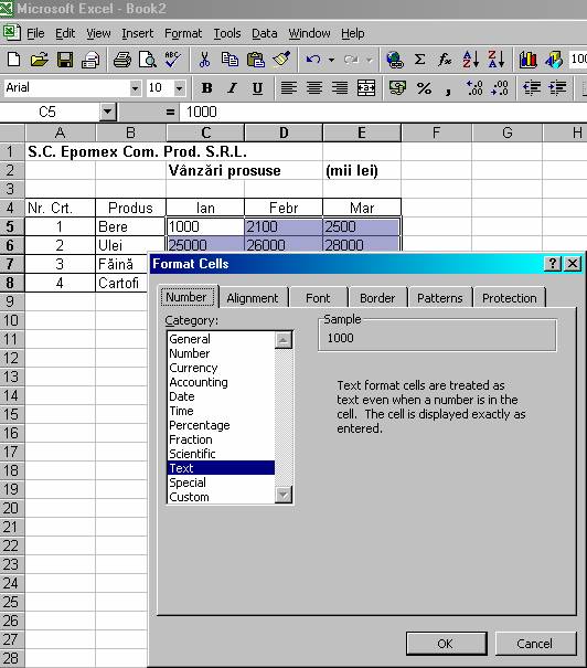 Efectuati clic pe Category Text din rubrica Number a casetei de dialog Format Cells