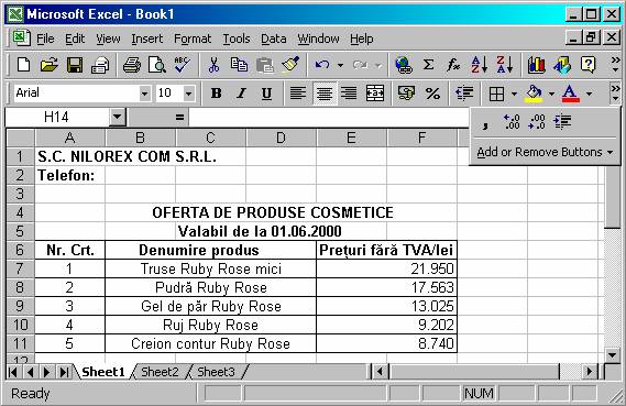 Efectuati clic pe butonul Comma Style (cu virgula), din bara de instrumente Formatting