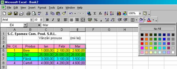 Executati clic asupra butonului Fill Color din bara de instrumente de formatare.