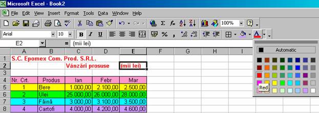 Executati clic asupra butonului Font Color din bara de instrumente de formatare.