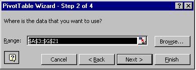 Într-o a doua etapa PivotTable Wizard - Step 2 of 4, fig.1.136, se valideaza tabela sursa pe baza careia se va construi tabela pivot sau daca sursa de date nu a fost selectata anterior, aceasta se poate selecta în aceasta etapa prin completarea în rubrica Range.