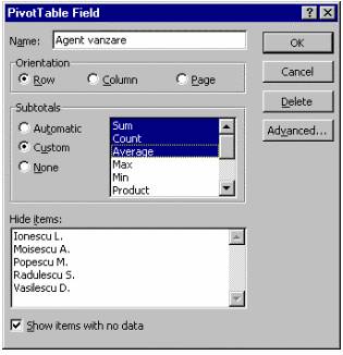 Deci tabela pivot este un instrument care permite o foarte elastica asociere a unor câmpuri într-o maniera interactiva, fapt ce duce la regruparea datelor si prezentarea acestora într-un mod sintetic.