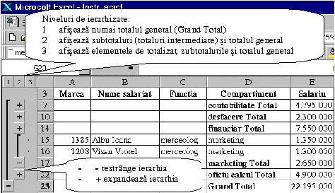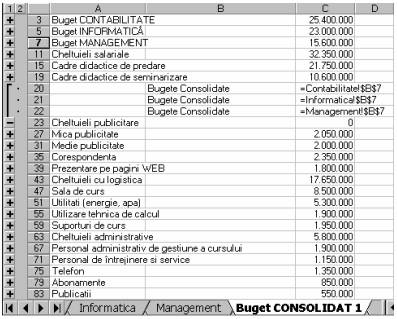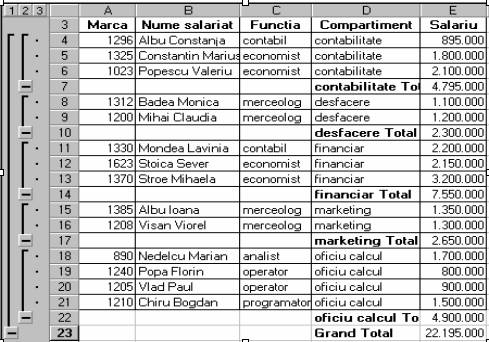 Prin validarea actiunii cu butonul OK, sintetizarea informatiei prin însumare se va efectua automat pentru fiecare compartiment si functie în parte. Figura 1.131 prezinta rezultatele gruparii datelor.
