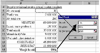 By Changing Cells: propune toate celulele care nu contin formule si au legatura cu scopul optimizarii. Altfel spus selecteaza automat toate celulele ce