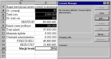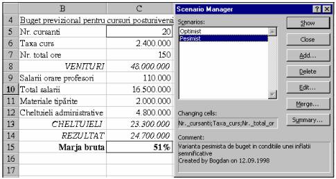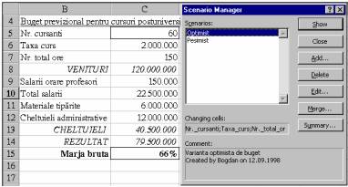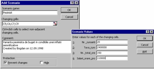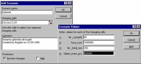 Dupa ce a fost construit un scenariu, acesta poate fi exploatat si actualizat oricînd prin comanda Tools - Scenarious.