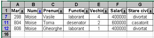 c) Consultarea bazelor de date cu ajutorul filtrului avansat