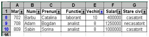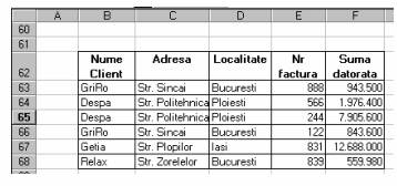Avantajul utilizarii comenzii Autofilter consta īn faptul ca afiseaza dintr-o data toate īnregistrarile care satisfac criteriile specificate, sub forma unei liste al carui continut poate fi modificat, tiparit, formatat sau chiar sters dintr-o data.