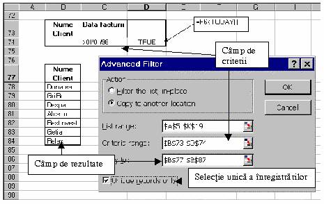 Fig. 1.119 Date si criterii pentru filtrare avansata