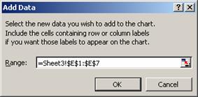 Selecteaza diagrama si executa secvent 636i85g a ChartAdd Data. Precizeaza domeniul de date pe care doresti sa-l adaugi. Poti folosi butonul Collaps Dialog pentru a reduce dimensiunea casetei de dialog si a selecta domeniul.