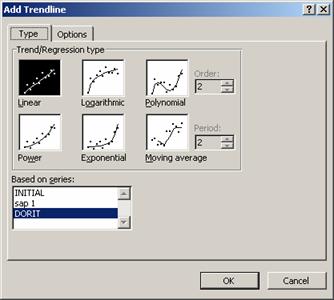 Executa secventa ChartAdd Trendline (Adaugare linie de evolutie) pentru a afisa caseta de dialog Add Trendline.
