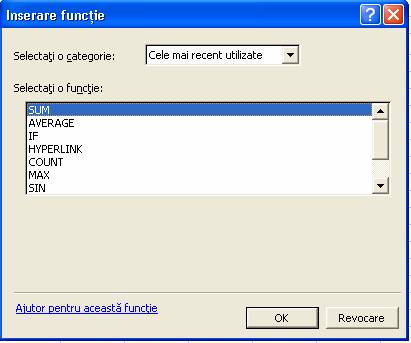 Apoi se alege (Fig. 2) categoria din care face parte functia, functia si dupa OK se precizeaza argumentele functiei (Fig. 3)
